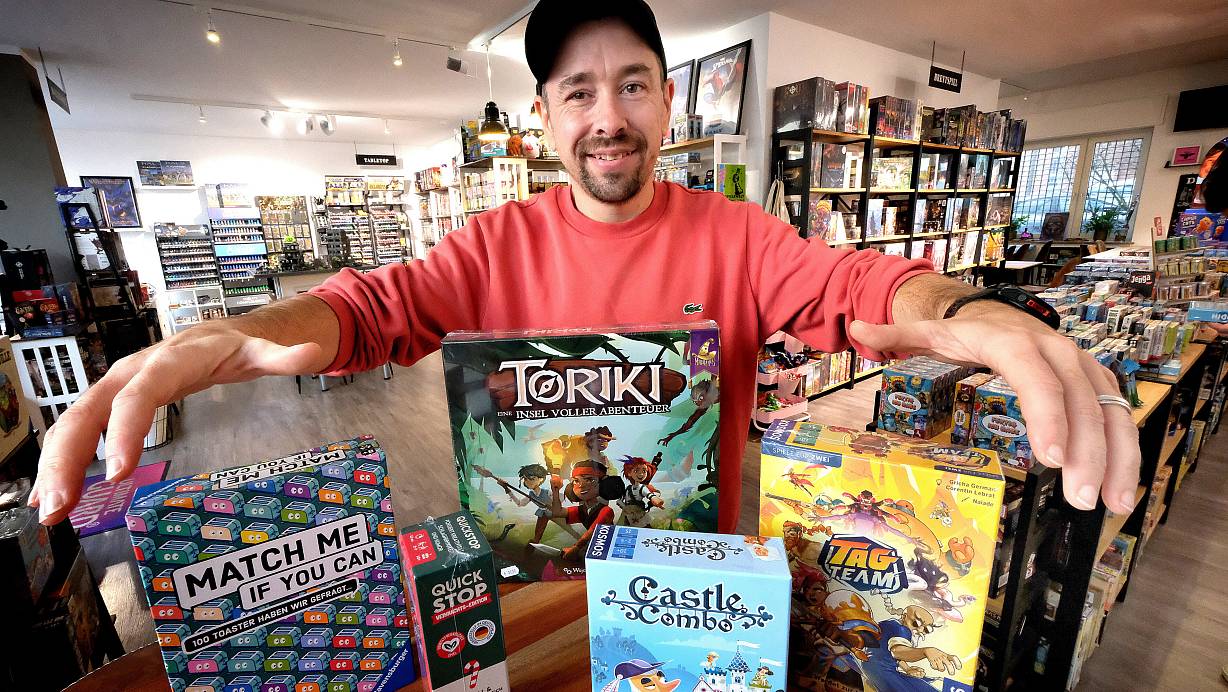 Dennis Glöge hat einige Empfehlungen für Weihnachtsgeschenke. Er empfiehlt Spiele für Groß und Klein in Gütersloh. | © Andreas Frücht
