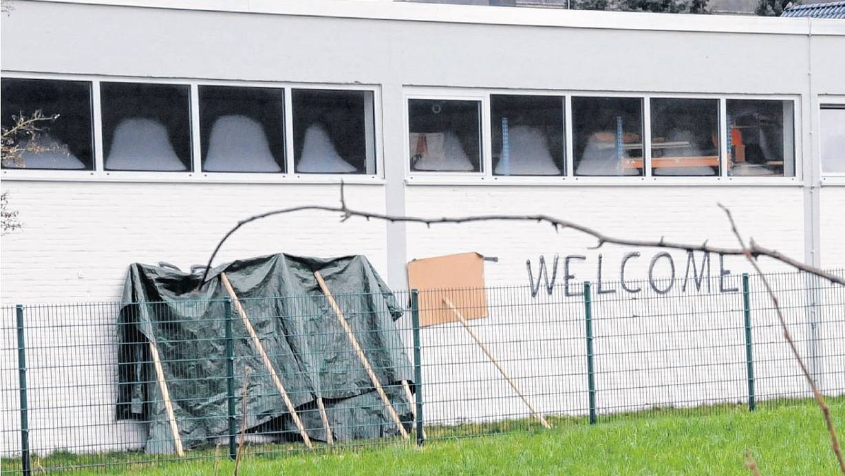 Rassistische Schmiererei: Am Wochenende sprühten Unbekannte Hassparolen an Haller Flüchtlingsunterkünfte oder wie hier an das Gebäude von Straßen.NRW. Hier deckten die Mitarbeiter Teile der Schriften ab, so dass am Ende nur noch „Welcome" sichtbar war. | © Rolf Uhlemeier