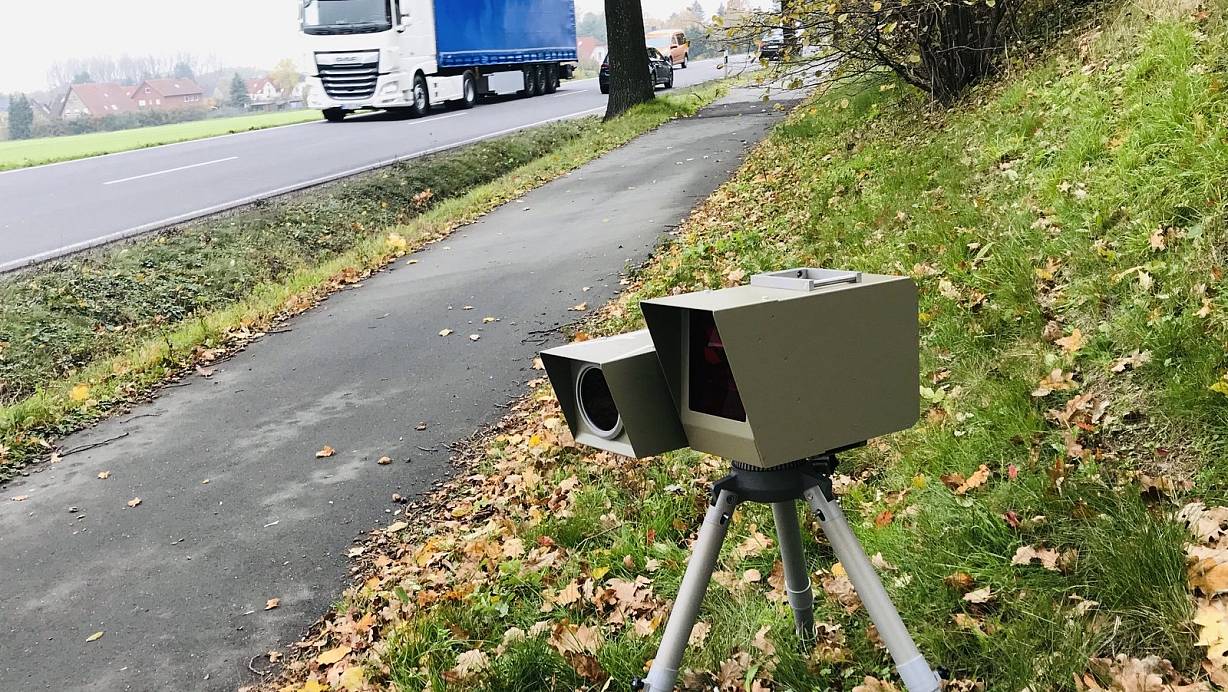 „Die vier Module des Systems, der zentrale Einseitensensor, zwei Kameras, der Datenspeicher und die Messüberwachung im Auto sind die Bestandteile der neuen Technik, die jetzt als Nachfolger des Messgerätes ES 3.0 im Land Nordrhein-Westfalen eingeführt werden soll", erklärt Bernhard Riepe, Sachbearbeiter beim Straßenverkehrsamt des Kreises Gütersloh.