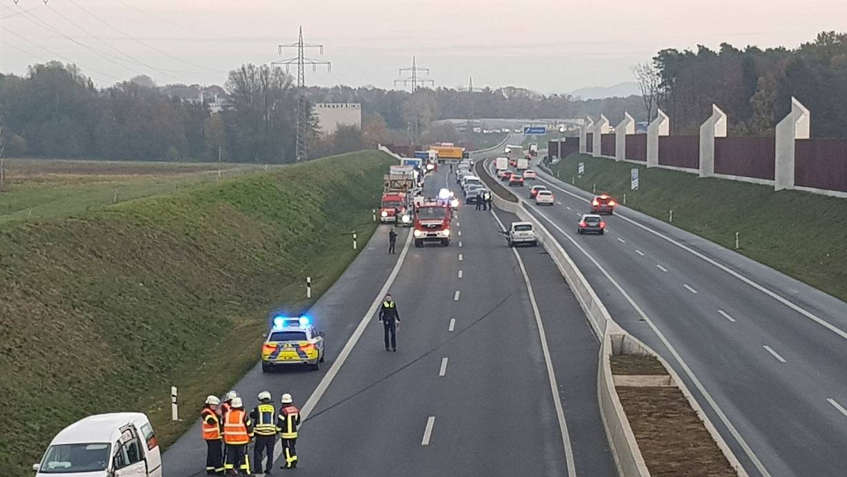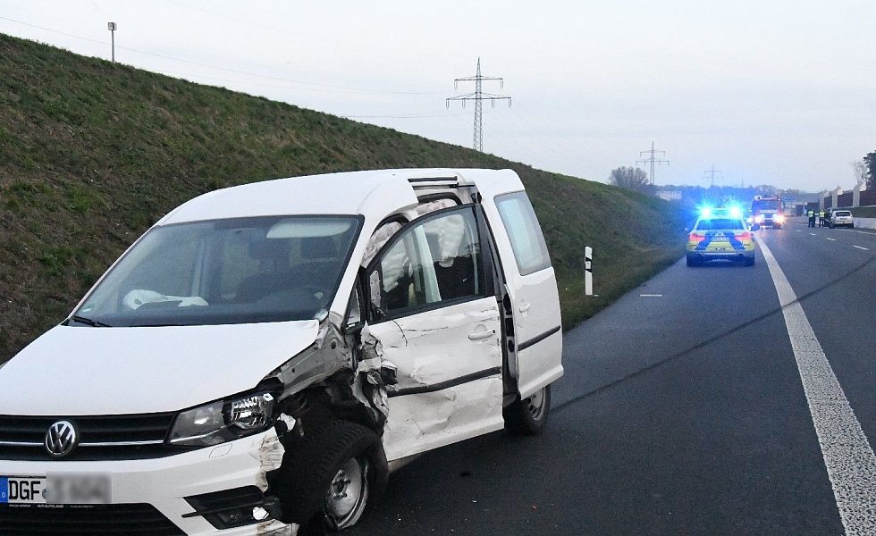 Während der Ford stark beschädigt an der Mittelleitplanke liegen blieb, schleifte der Volkswagen über den beiden Fahrspuren bis auf den Standstreifen kurz vor der Autobahnbrücke Bahnhofstraße, ehe er zum Stehen kam.