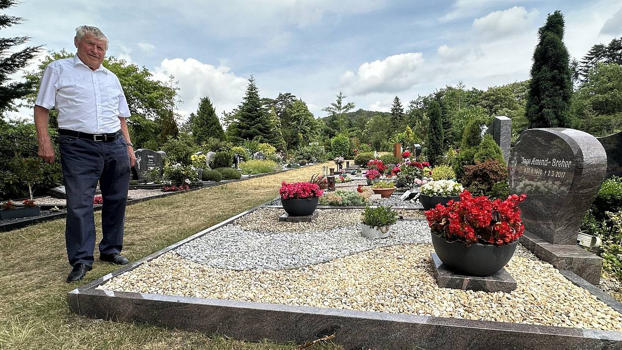 Günter Amend steht am Grab seiner Frau. Er ist erschüttert angesichts der Tatsache, dass hier wertvolle Dinge gestohlen wurden. | © Heiko Kaiser