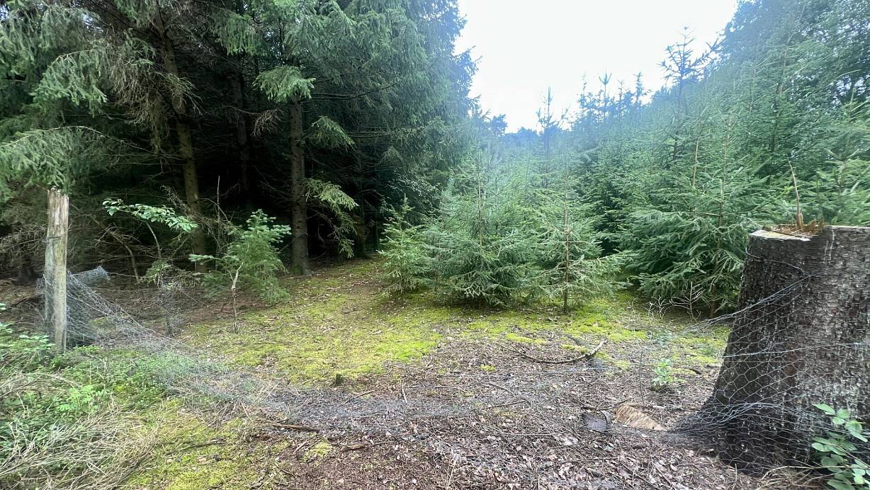 Der Weg zum Leichenfundort ist unwegsam, die Stelle, wo der Leichnam von Marion S. lag, war durch einen Zaun abgesperrt. Wer den niedergedrückt hat - also Polizei oder Täter - ist offiziell unklar. | © Wolfgang Wotke