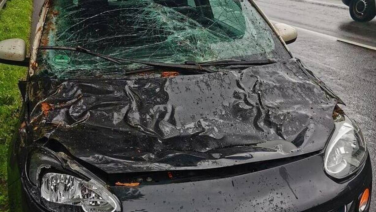 Motorhaube und Windschutzscheibe haben einiges abbekommen. Aber auch um