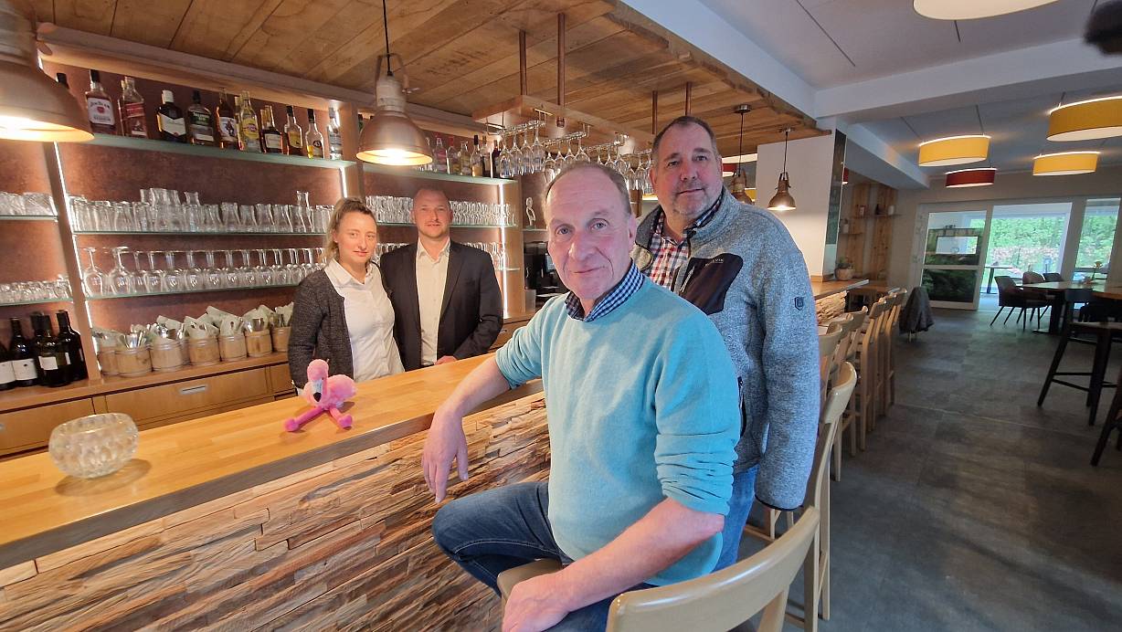 Madlen Kunze (v.l.) und ihr Bruder Marcel Müller sind die neuen Pächter im Grünwalde. Matthias Stüve und Gerrit Imkemeyer, Eigentümer des Gebäudes, ziehen sich zurück. | © Uwe Pollmeier