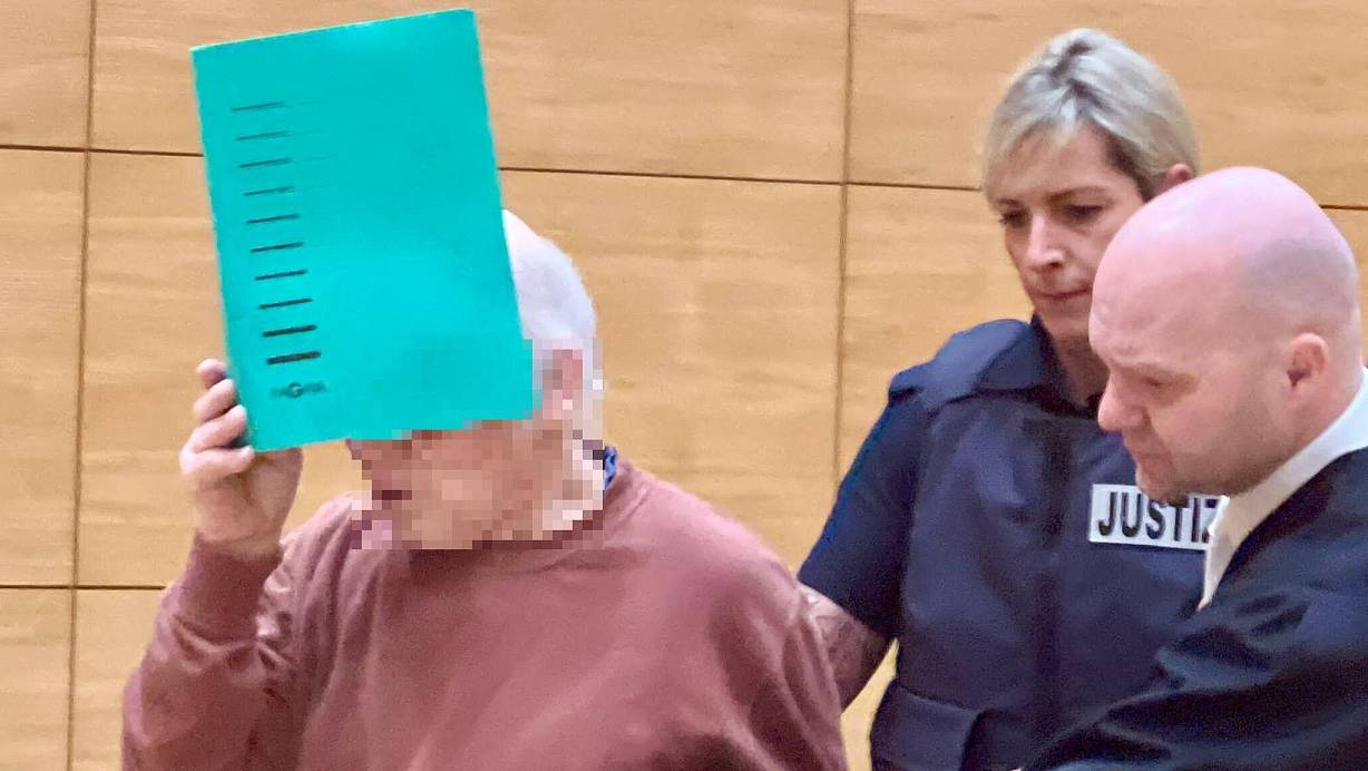 Der inzwischen verurteilte Ehemann der getöteten Marion S. hatte sich im Gerichtssaal eine Mappe vor das Gesicht gehalten, als die Kameras auf ihn gerichtet waren. | © Wolfgang Wotke