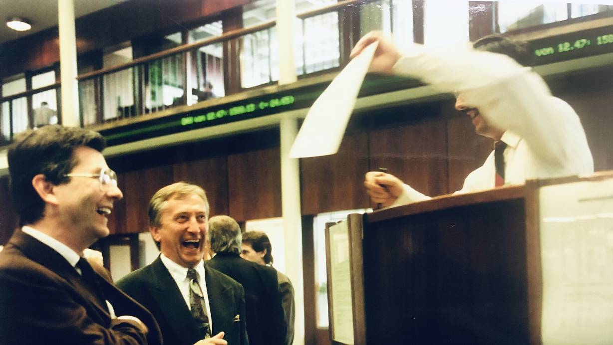 Ende der 1980er-Jahre ging die Gerry Weber International AG an die Börse. Udo Hardieck (links) und Gerhard Weber waren mit vor Ort. | © Gerry Weber International GmbH