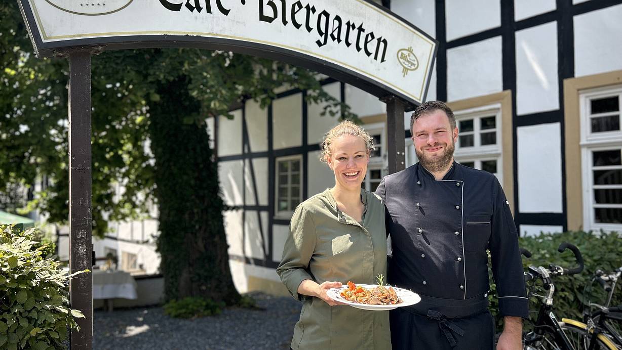 Hannah Schmiderer und ihr Verlobter Andre Bülter haben sich in Österreich während ihrer Ausbildung kennengelernt. Gemeinsam haben sie das kulinarische Angebot des Gasthofs Tatenhausen wiederbelebt. | © Tobias Barrelmeyer