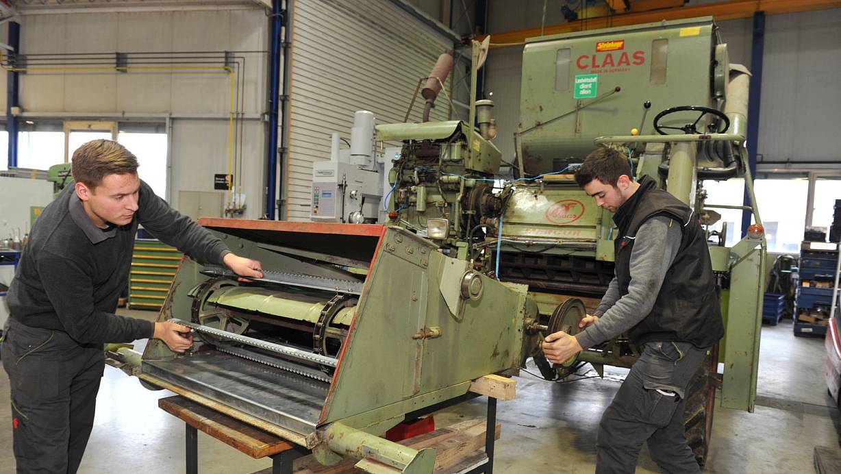 Harsewinkel. Claas- Azubi Till Lauhoff dreht den Zündschlüssel herum - und der betagte Mähdrescher läuft wieder rund. Er und sein Kollege Jens Striewe haben in zirka 200 Arbeitsstunden einen historischen Mähdrescher vom Typ "Mercur" aus dem Jahr 1965 restauriert. Dieser ist seit 2004 auf den Feldern des Freilichtmuseums Detmold im Einsatz. In diesem Jahr war eine Generalüberholung fällig, die im technischen Bildungszentrum von Claas über die Bühne ging.