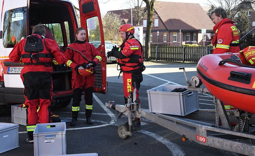 Am frühen Nachmittag wurden noch etwa 20 Taucherinnen und Taucher der DLRG aus Sassenberg, Warendorf und Telgte sowie der Feuerwehr Ahlen alarmiert, die in dem Axtbach nach dem Vermissten suchten.An der ehemaligen Grundschule wurden die Helferinnen und Helfer von drei Mitarbeitern der Ortsgruppe des Deutschen Roten Kreuz mit Kaffee und Brötchen versorgt.