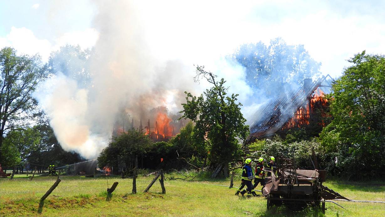 Die Rauchsäule war kilometerweit sichtbar: Ein Brand auf einem Hof in Greffen hat massive Schäden angerichtet. Der Wind fachte das Feuer immer wieder an.