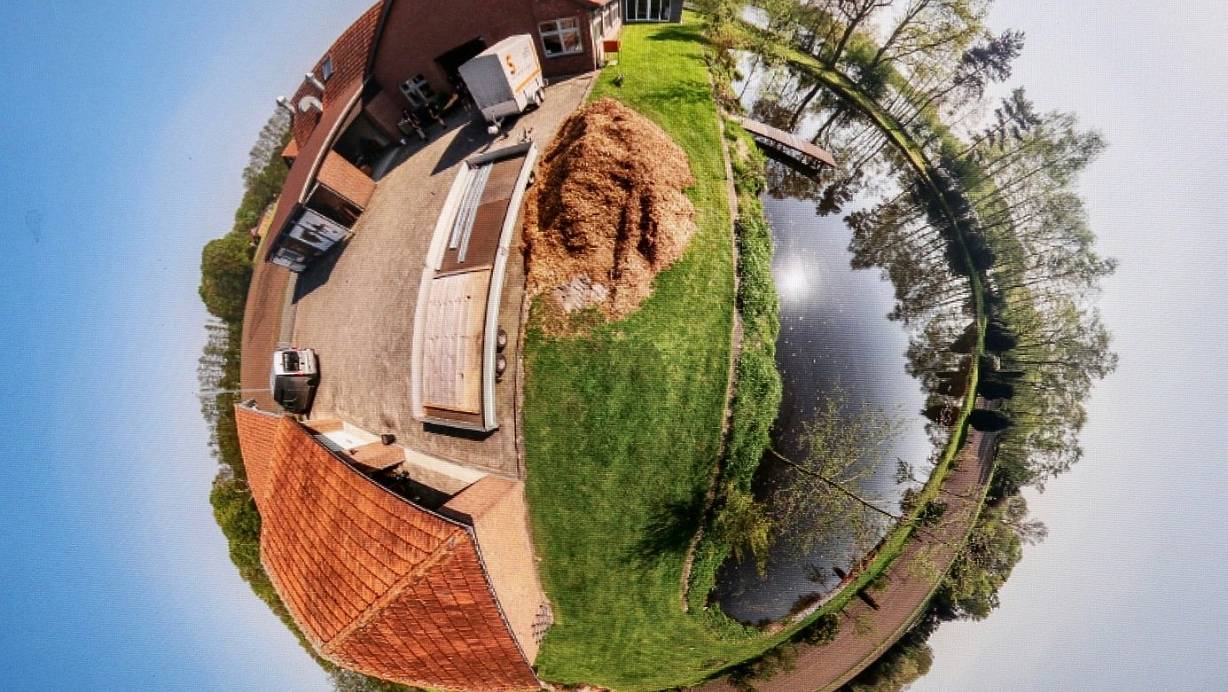 Idylle am See: Die 360 Grad-Aufnahme verdeutlicht es: Die Firma Formfreund an der Grenze zwischen Marienfeld und Brockhagen liegt im Grünen. Mit seinem Start-Up-Konzept hat Firmengründer Tim Brüggemann den Preis der OWL Wirtschaft gewonnen. | © Robert Becker