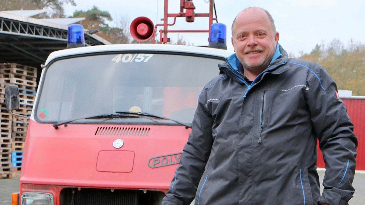 Werner Herbrink hat ein Feuerwehrauto von 1974 erworben, das einen ausfahrbares Flutlicht transportiert. Freiwillige Feuerwehr Witzenhausen steht auf den Seitentüren. | © Robert Becker