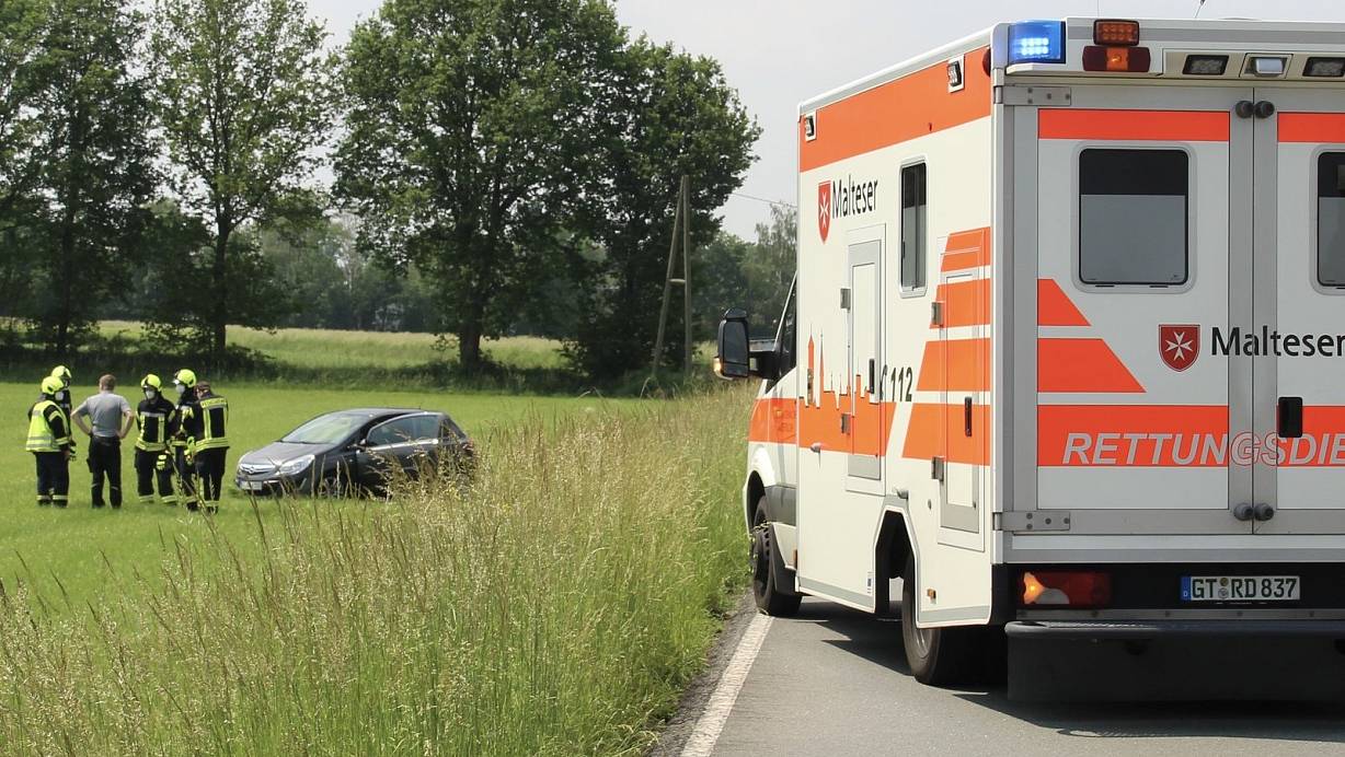 Aus noch ungeklärter Ursache verliert der 21-jährige Fahrer aus Bielefeld die Kontrolle über sein Fahrzeug und kommt von der Fahrbahn ab. Das Auto kommt erst in einem Feld zum Stehen.