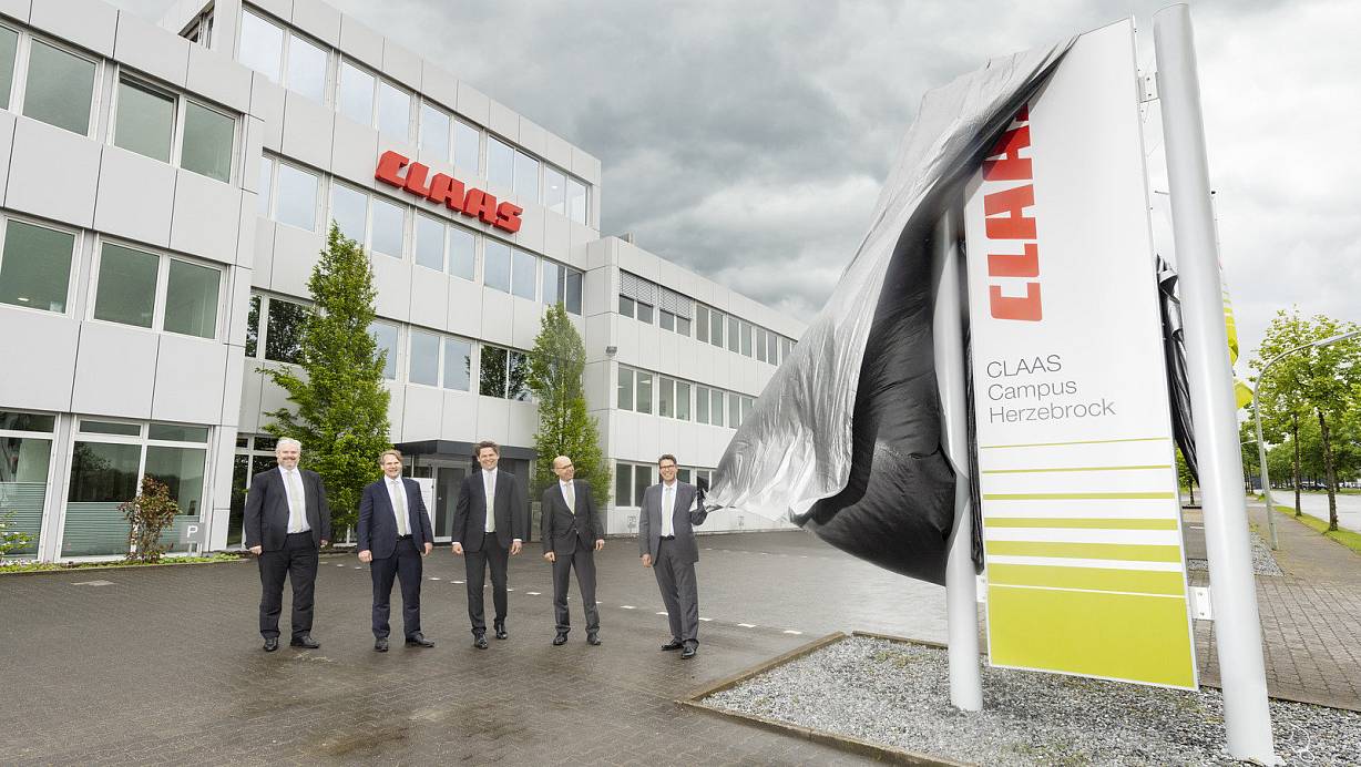 Eröffnung des CLAAS Campus Herzebrock - mit dabei waren (von links): Jan Nachtwey (Geschäftsführung CLAAS Vertriebsgesellschaft), Wolf von Wendorff (Leiter Digitalisierung und Prozesse, Business Unit Sales & Service), David Knorr (Leiter IT-Lösungen für die Business Unit Sales & Service in der Corporate IT), Hans Lampert (CLAAS Konzernleitung, verantwortlich für Bilanzen, Controlling und Betriebswirtschaft) und Dr. Benjamin Schutte (CVG Geschäftsführung). | © Claas