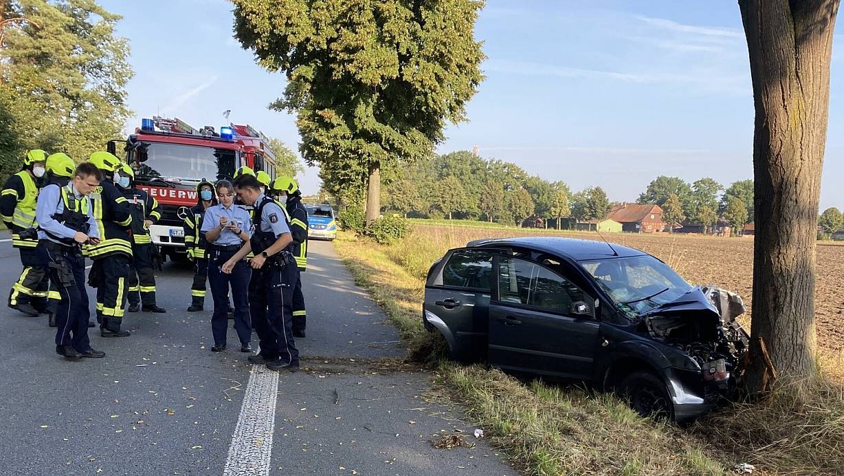 Der junge Fahrer kommt am frühen Sonntagmorgen von der Fahrbahn ab und kracht gegen einen Baum. Vorbeifahrende Autofahrer alarmieren sofort die Rettungskräfte.