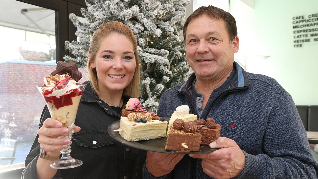 Spekulatius-Eis und Käsekuchen vor dem Weihnachtsbaum: Josephine („Josy") und Bernd Dammann bieten ihren Gästen noch bis zum 4. Advent ein Winter-Special. | © Robert Becker