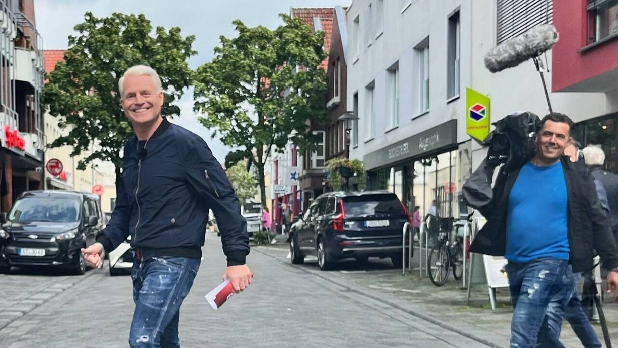 TV-Star und Komiker Guido Cantz hat mit einem fünfköpfigen Kamera-Team Passanten in der Harsewinkeler Innenstadt für die RTL-Sendung „Mario Barth deckt auf“ interviewt. | © Robert Becker