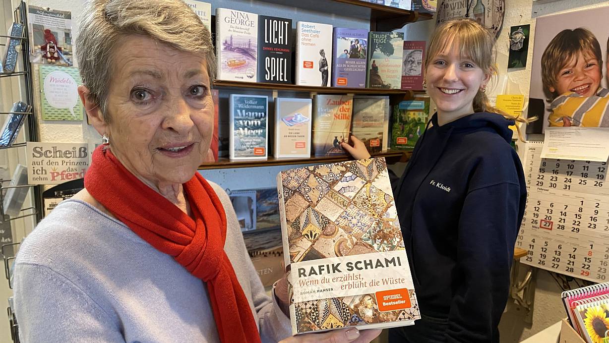 Buchhändlerin Annette Jürgensmeier wird ihren Buchladen Ende März schweren Herzens endgültig schließen. Auch Studentin und Aushilfe Wiebke Kloidt, die schon als Kind hier Bücher kaufte, fällt es schwer, sich an den Gedanken zu gewöhnen, dass Harsewinkel bald keine Buchhandlung haben wird. | © Burkhard Hoeltzenbein