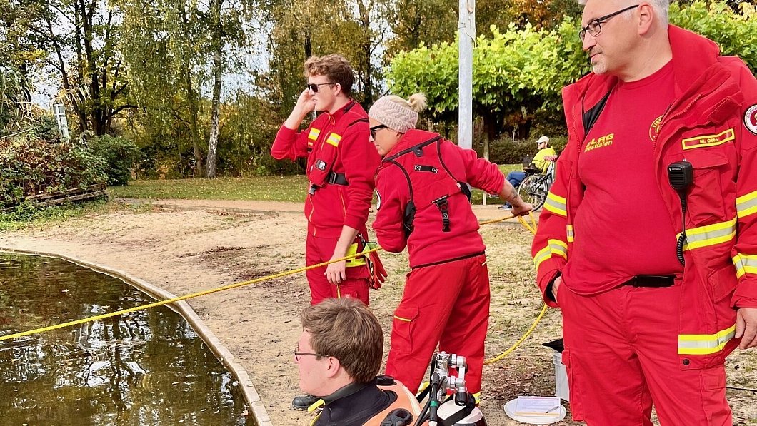 Die Taucher führten über alles, was sie in dem Teich aufspürten, genau Protokoll. Eine Mediengruppe begleitete den Einsatz für den Social-Media-Auftritt der Rettungsgruppe. Zwischendurch gab es dann aber auch überraschende Funde.