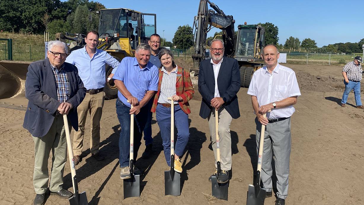 Den ersten Spatenstich setzen (v.l.) Franz-Josef Söte, Klaus Oortmann, Martin Kleinheinrich, Andreas Gerhard, Sabine Amsbeck-Dopheide, Rainer Kuhlmann und Dietrich Meendermann. | © Burkhard Hoeltzenbein