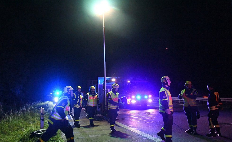 Er fuhr über die gesamten Fahrbahnen nach rechts und über einen Grünstreifen in ein Waldstück. Dort überschlug sich das Fahrzeug, Äste wurden noch in vier Metern Höhe beschädigt. Den Einsatzkräften zufolge hätten kleinere Bäume wie eine Sprungschanze gewirkt.