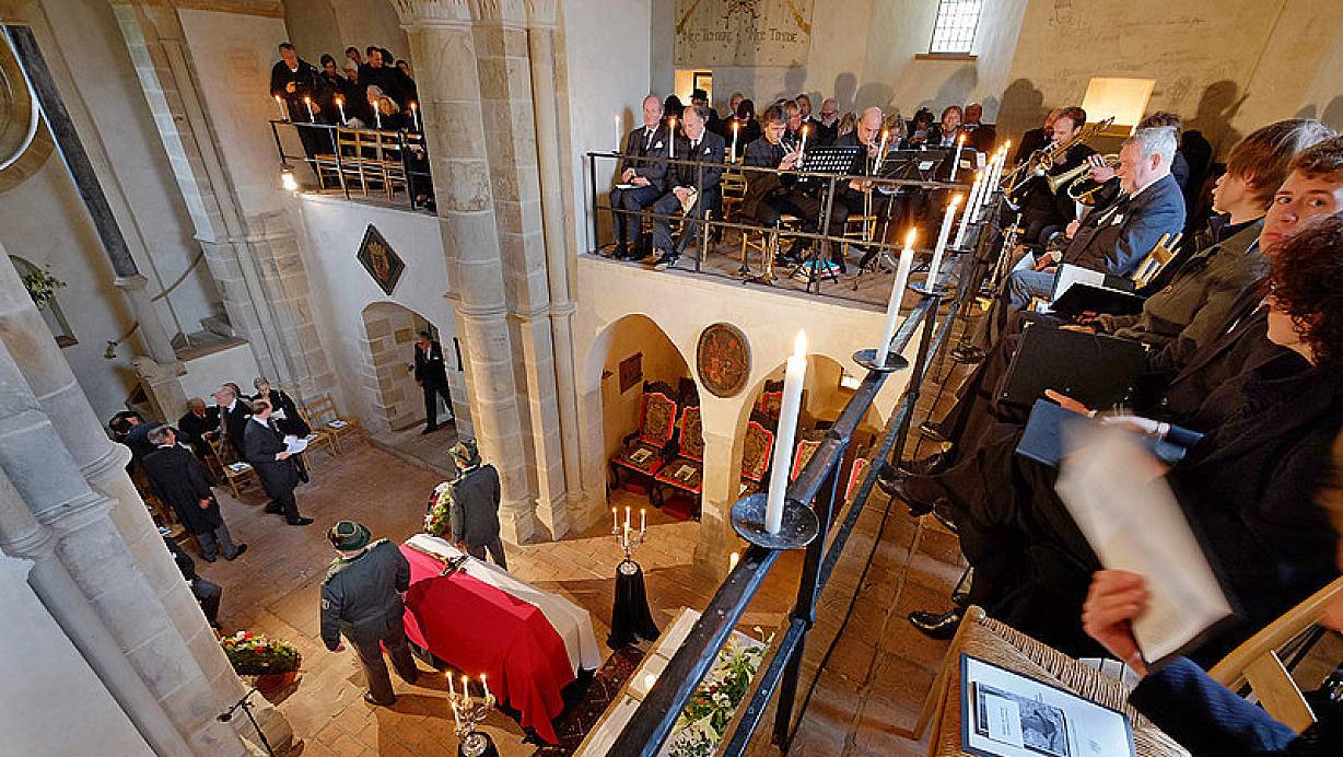 Insgesamt etwa 450 Trauergäste waren in die Schlosskapelle zu Rheda im Kreis Gütersloh gekommen. Bentheim-Tecklenburg war am 21. März im Alter von 90 Jahren in seinem Alterswohnsitz Kloster Herzebrock friedlich im Kreis seiner Familie gestorben.