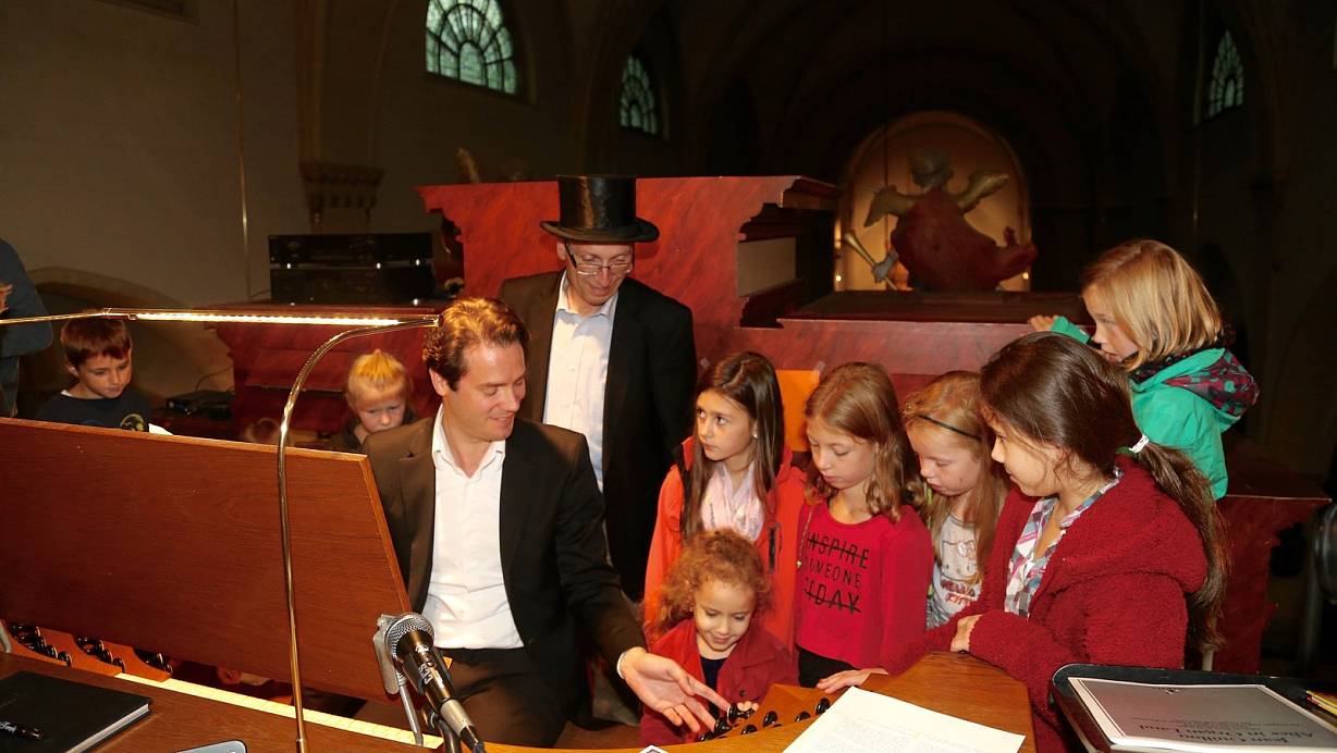 Eine glückliche Entscheidung war es, den 35-jährigen belgischen Organisten Étienne Walhain dafür nach Rheda einzuladen, der über zehn Jahre mit Guillou zusammenarbeitete und daher eine mustergültige Interpretation des komplexen Werkes brachte. Die Kinder und ihre Begleiter, die vorher durch Kantor Harald Gokus begrüßt und auf die Orgelbühne geführt wurden, durften meist zum ersten Mal ganz von Nah den Orgelklang erleben und über das makellose Spiel mit Händen und Füßen staunen.