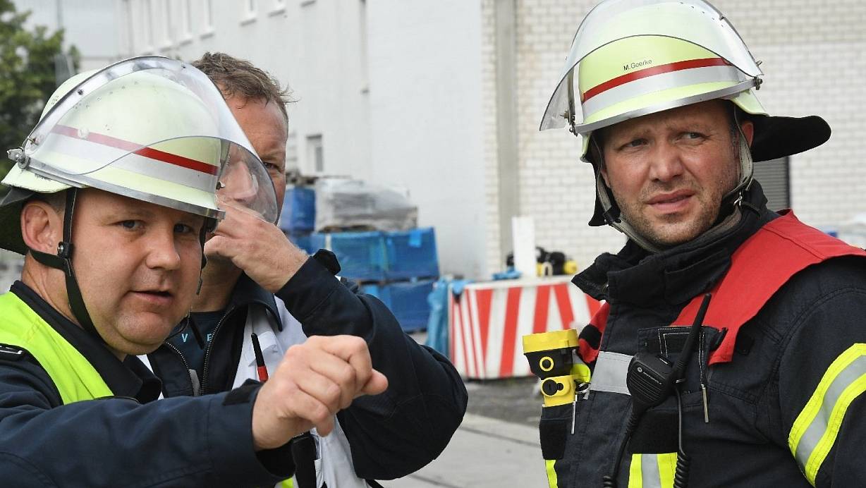 Stadtbrandinspektor Christian Kottmann (l.) und sein Stellvertreter Matthias Goerke (r.) im Einsatz. | © Andreas Eickhoff