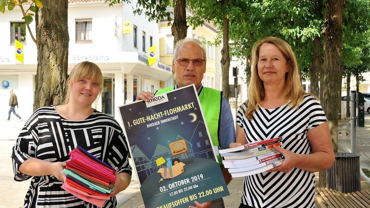 Janina Plum, Rolf Fricke und Andrea Sandknop freuen sich auf den 1. Gute-Nacht-Flohmarkt am Mittwoch, 2. Oktober, in der Innenstadt von Rheda. | © Waltraud Leskovsek