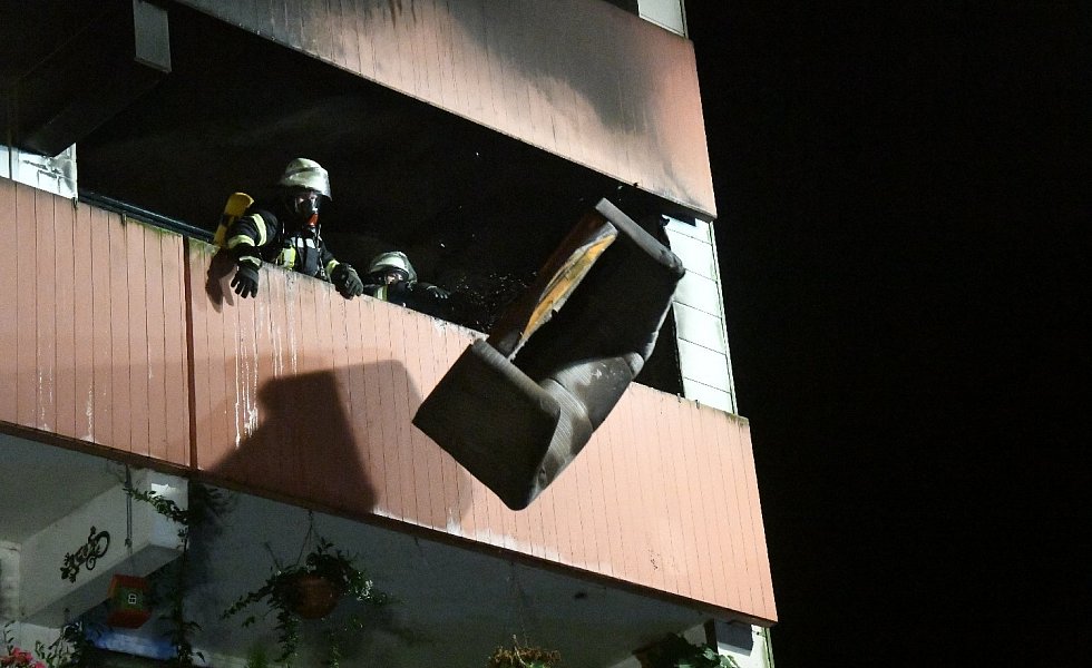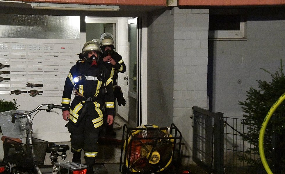 Erst als die rund 100 Bewohner ihre Wohnungen verlassen und sich im Erdgeschoss versammelt haben, betreten die ersten der insgesamt rund ein dutzend Feuerwehrleute die stark verqualmte Wohnung. Durch die Hitze waren Fensterscheiben geborsten. Die Flammen hatten so auch in den anderen Räumen erheblichen Schaden angerichtet.