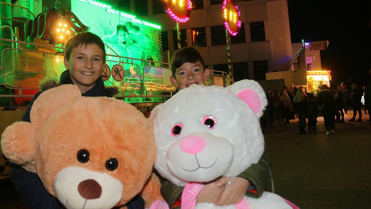 Leon (10) und Marlon (9) gewannen riesige Kuscheltiere. | © Robert Becker