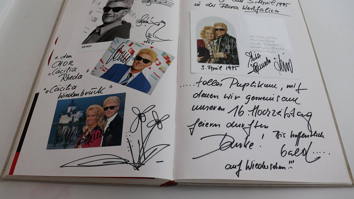 Sorgenfalten auf Schlüters Stirn gab es bei Heinos zweitem Auftritt im Reethus, diesmal im Rahmen der Reihe „Gala der Volksmusik". „Da hatten sich vor der Halle junge Leute versammelt, deren Aufschriften auf den T-Shirts nichts Gutes erwarten ließen. Ich wollte Heino auf eventuelle Störungen vorbereiten. Der ließ sich die jungen Leute in die Garderobe kommen, orderte Bier für alle und hat über zwei Stunden, bis ganz kurz vor Konzertbeginn, mit ihnen intensiv geplaudert. Im Saal wunderten sich die älteren Fans dann, wie Heino da von einer Gruppe ganz junger Leute dermaßen umjubelt wurde".