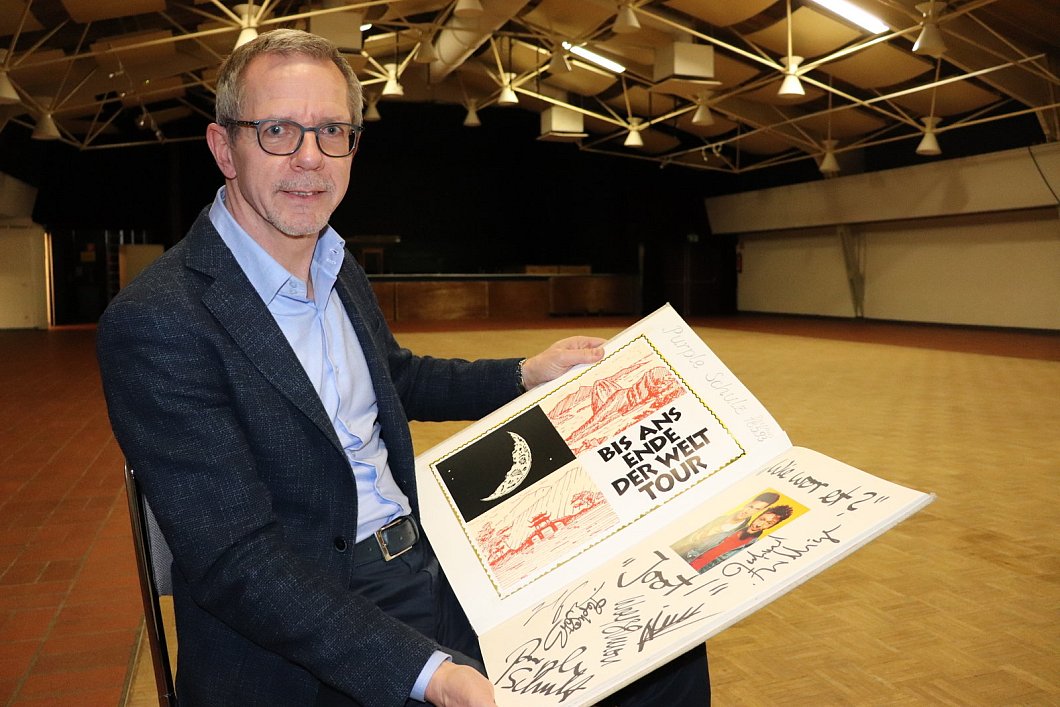 Rheda-Wiedenbrück. Viele Künstler hat das Reethus, das zur Landesgartenschau (LGS) 1988 von einer Fahrzeughalle in eine Stadthalle verwandelt wurde, erlebt. Justus Frantz und Helge Schneider waren da. Auf der Bühne standen auch Pe Werner und Thomas Freitag. Florian Silbereisen bot Volksmusik, damals als Jugendlicher von seinen Eltern begleitet. Viele Erinnerungen hat Burkhard Schlüter, lange Jahre Geschäftsführer der Flora Westfalica, an all die Gäste. Viele haben sich in einem großen Buch verewigt, in dem Schlüter im Reethus blättert. Das ist fast leer geräumt, soll wenige Wochen nach der Eröffnung der neuen Stadthalle am 8. Februar, abgerissen werden.