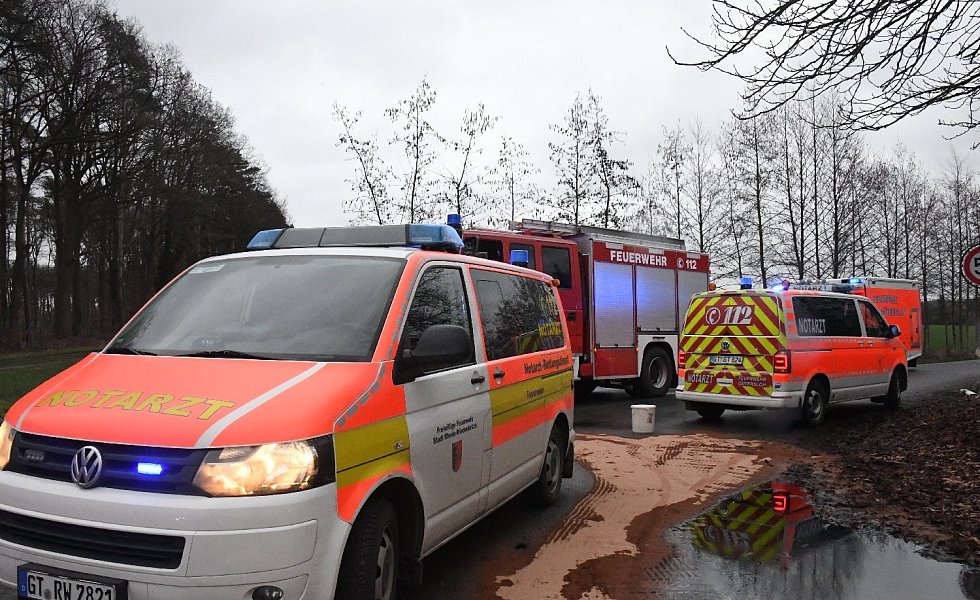 Nach den ersten Notrufen wurden die hauptantlichen Kräfte der Feuerwehr sowie die Löschzüge Lintel und Wiedenbrück alarmiert. Ferner eilten Notärzte aus Rheda-Wiednbrück und Gütersloh zu der Unfallstelle, daneben waren Rettungswagen im Einsatz. Als die ersten Kräfte vor Ort waren und das Ausmaß klar wurde, löste die Kreisleitstelle den Alarm für einen Massenanfall von bis zu zehn Verletzten aus. Zur Koordination der Hilfe eilten auch der „Leitende Notarzt" und der Organisationsleiter Rettunsgdienst" zu der Unfallstelle. Da aus dem Regelrettungsdienst insgesamt sieben Rettungswagen eingesetzt wurden, besetzten die Hilfsorganisationen die verwaisten Rettungswachen für weitere Paralleleinsätze.