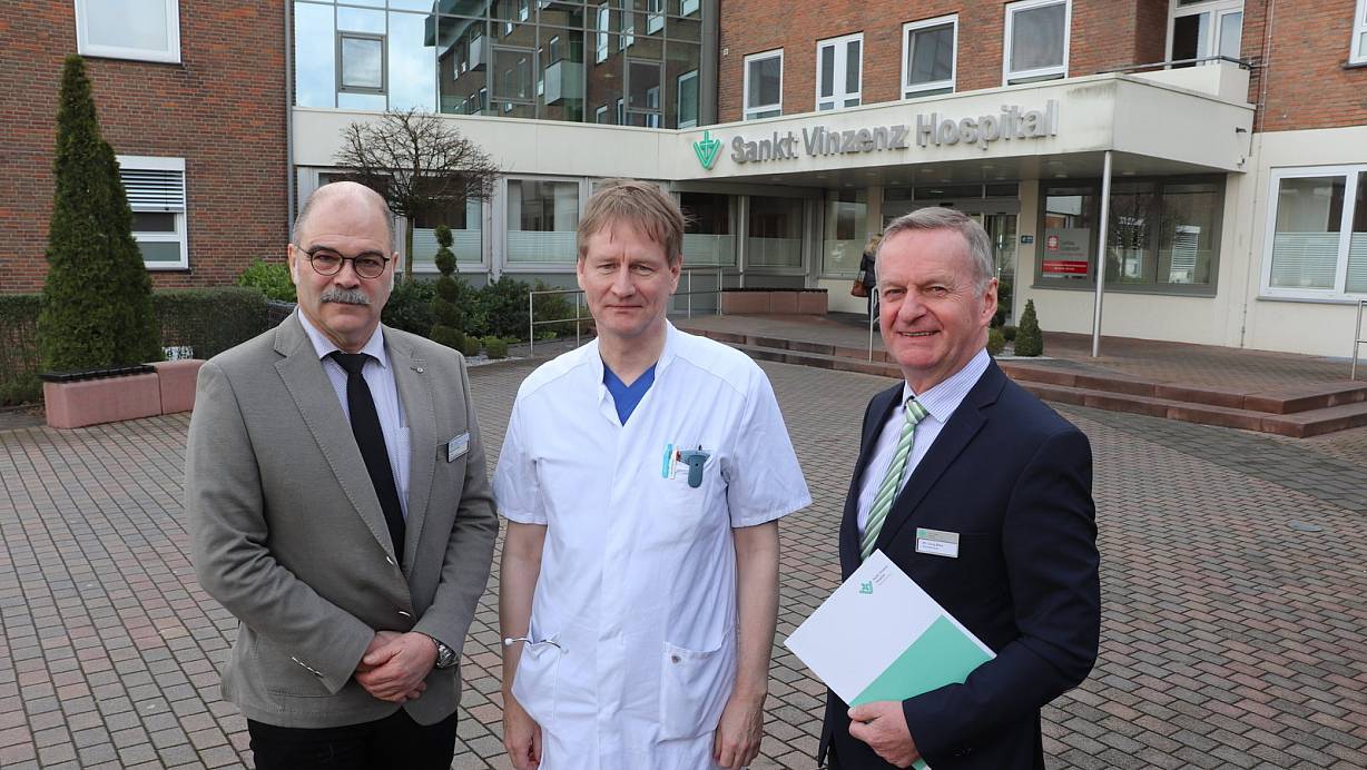 Siegmund Neu, Pflegedienstleiter (v. l.), Chefarzt Rainer Schnippe und Geschäftsführer Georg Rüter. | © Marion Pokorra-Brockschmidt