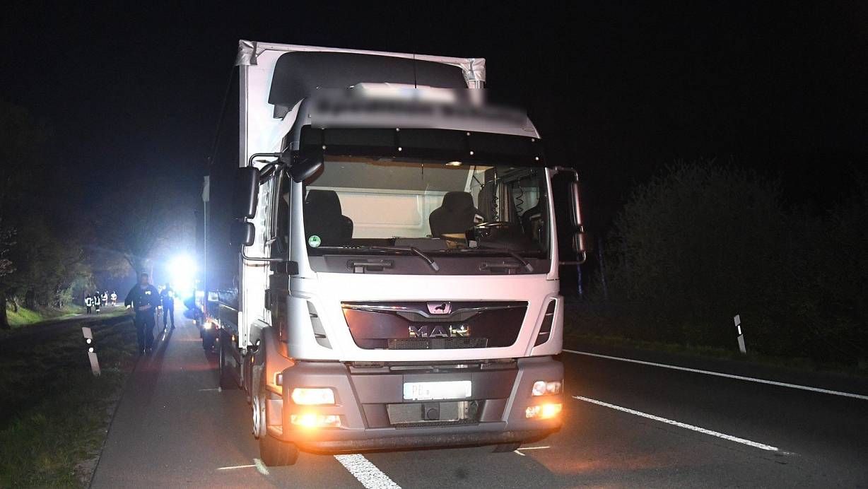 Der Fahrer kann den Lkw auf der B64 nicht mehr rechtzeitig stoppen. Die Identität der Frau ist noch nicht geklärt - Staatsanwaltschaft und Kriminalpolizei sind eingeschaltet.