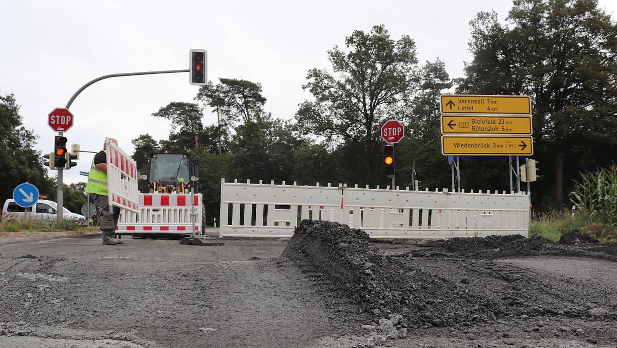 Seit 24. August wird die so genannte Schalück-Kreuzung saniert. Die Arbeiten sollen Mitte September beendet sein. Mit einem eventuellen vierspurigen Ausbau der B61 haben diese Bauarbeiten nichts zu tun, sagt ein Sprecher des Landesbetriebes StraßenNRW. | © Marion Pokorra-Brockschmidt
