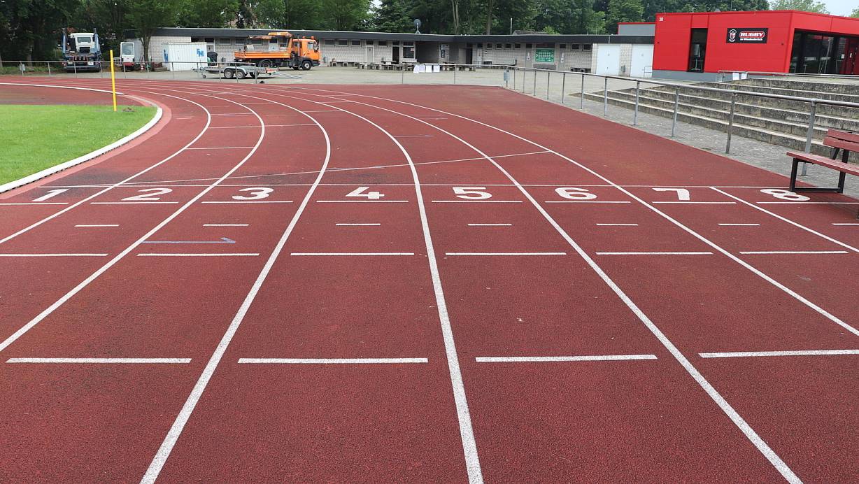 Die Laufbahn im Sportzentrum Burg soll einen neuen, hochwertigen Kunststoffebelag, eine Kastenrinne zur Entwässerung und eine neue Beleuchtung bekommen. | © Marion Pokorra-Brockschmidt