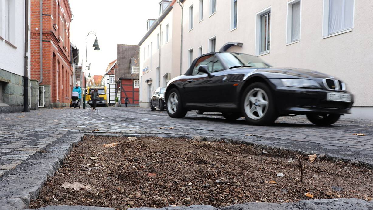 Die Kirchstraße ist nach der Erneuerung des Straßenbelages wieder befahrbar. Ambeerbäume und Stieleichen müssen noch gepflanzt werden. | © Marion Pokorra-Brockschmidt