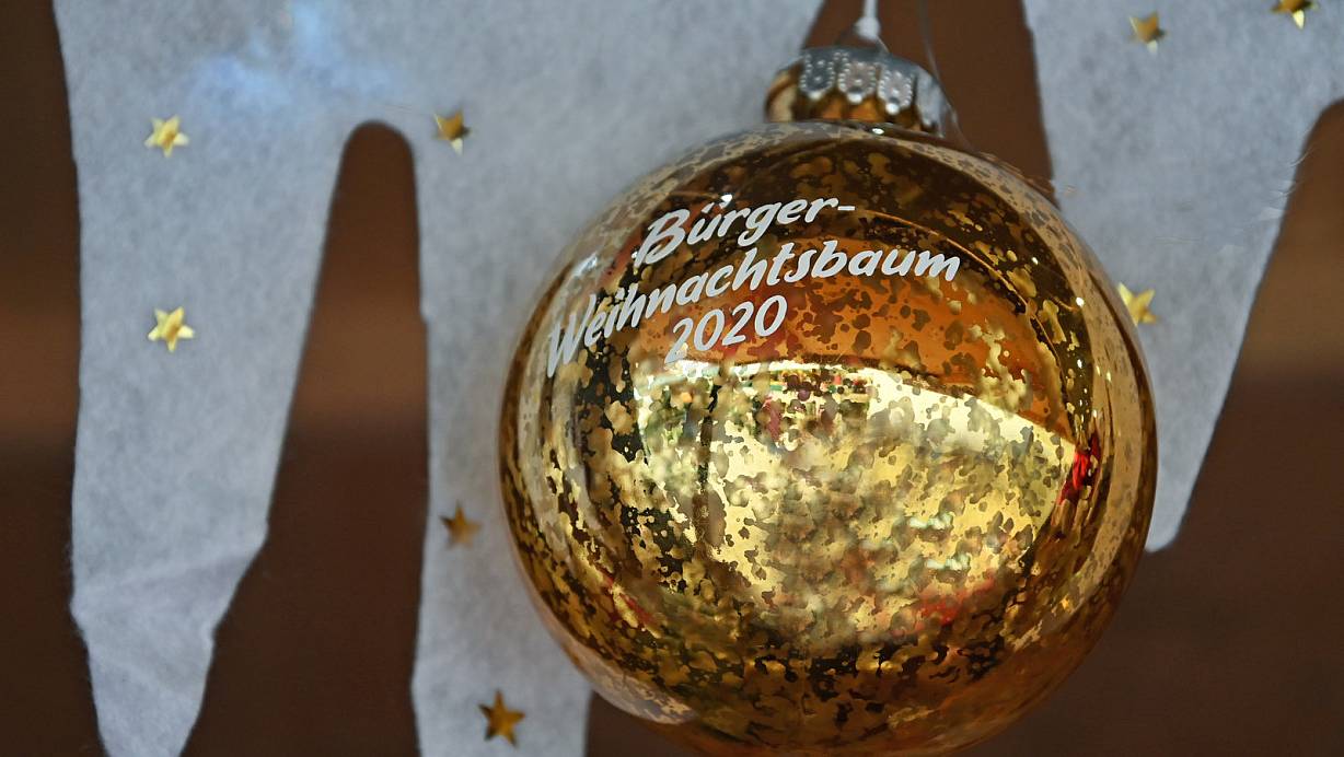 Kugeln weisen mit einem Schriftzug auf den Bürger-Weihnachtsbaum hin. | © Waltraud Leskovsek