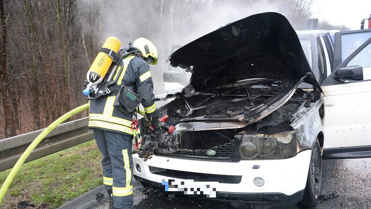 Der Fahrer und seine Mutter können sich aus dem brennenden Auto retten. Die Feuerwehr kann einen Totalschaden des Wagens nicht mehr verhindern.