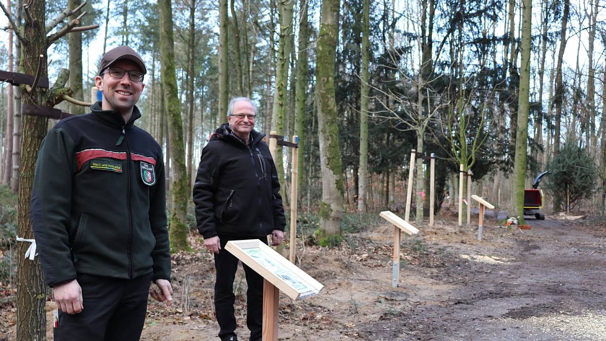 33 zumeist heimische Bäume wurden am modernisierten Waldlehrpfad im Rheda-Wiedenbrücker Stadtholz gepflanzt. 15 weitere folgen. Sie sollen resistent gegen den Klimawandel sein.