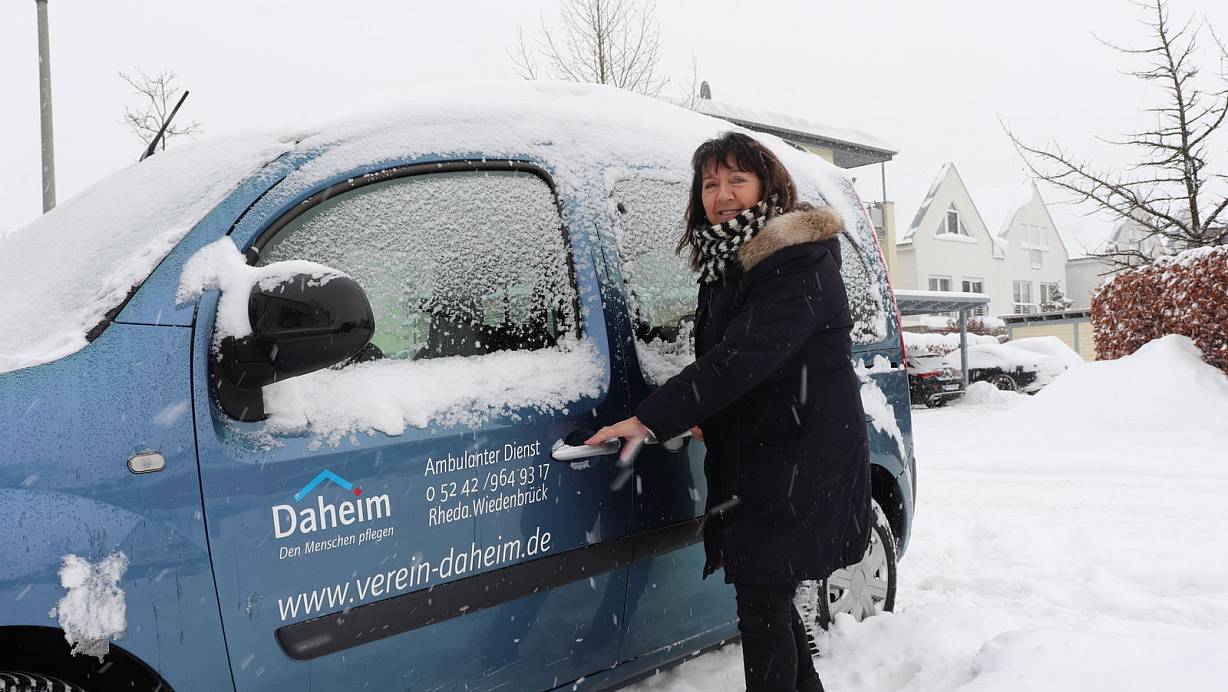 Danuta Mandla, Leiterin des Ambulanten Pflegedienstes "Daheim", berichtet, dass die Leute sehr hilfsbereit sind und den Kolleginnen bei Problemen mit dem vielen Schnee bereitwillig helfen. | © Marion Pokorra-Brockschmidt