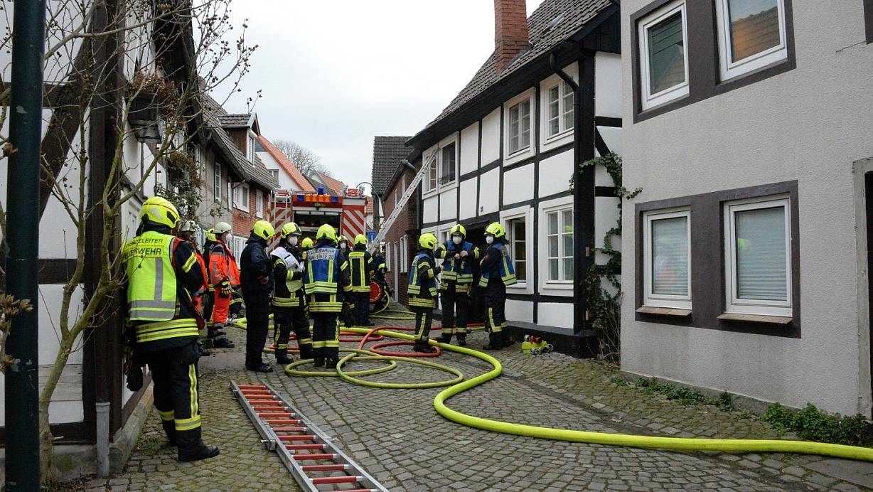Mann rettet sich aus brennendem Haus auf Balkon und muss gesichert werden