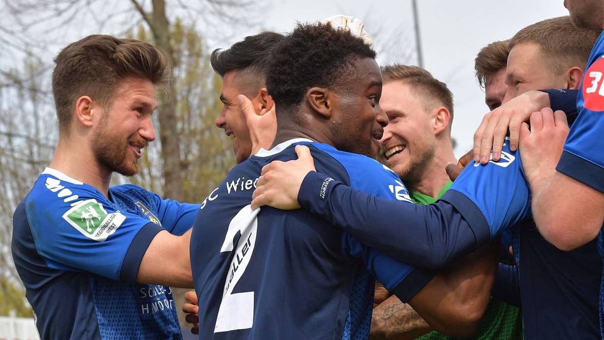Matchwinner: Zur Freude der Mitspieler erzielten David Hüsing (l.) und Ufumwen Osawe (2) die Tore beim 2:0-Sieg des SC Wiedenbrück über den SV Straelen. | © Jens Dünhölter