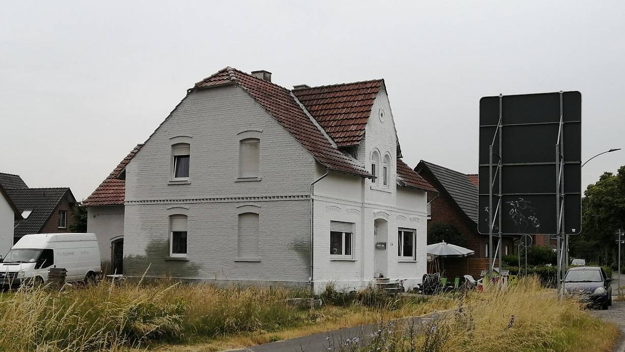 Weiß besprüht wurde die Fassade der Immobilie an der Rietberger Straße, das als "grünes Haus" bekannt wurde. | © Marion Pokorra-Brockschmidt