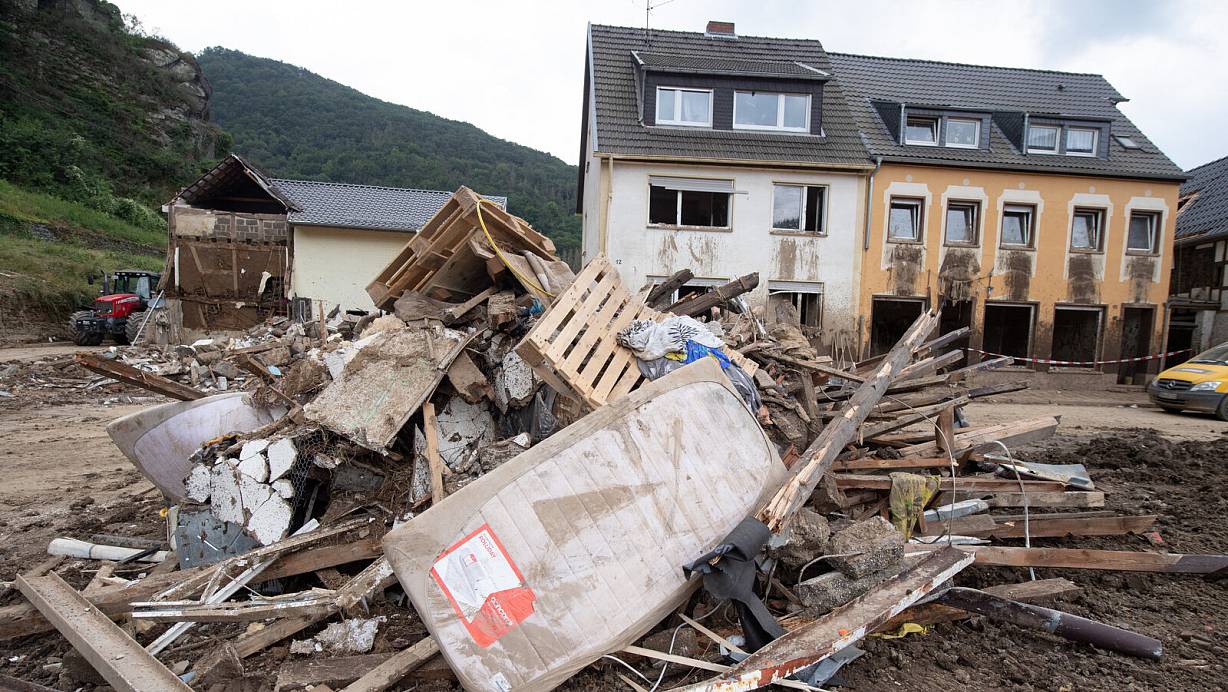 Meterhoch türmt sich der Unrat im Hochwassergebiet noch immer auf den Straßen. Helfer sind Tag und Nacht damit beschäftigt die Straßen in den weitgehend zerstörten Orten wieder befahrbar zu machen. | © picture alliance/dpa