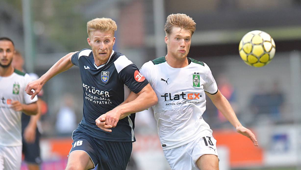 Benedikt Zahn und der SC Wiedenbrück (links) lieferte sich ein Duell auf Augenhöhe mit Michel Wentzel (rechts) und der Gladbacher U23. In 90 Minuten landete der Ball auf keiner Seite im Tor. | © Jens Dünhölter