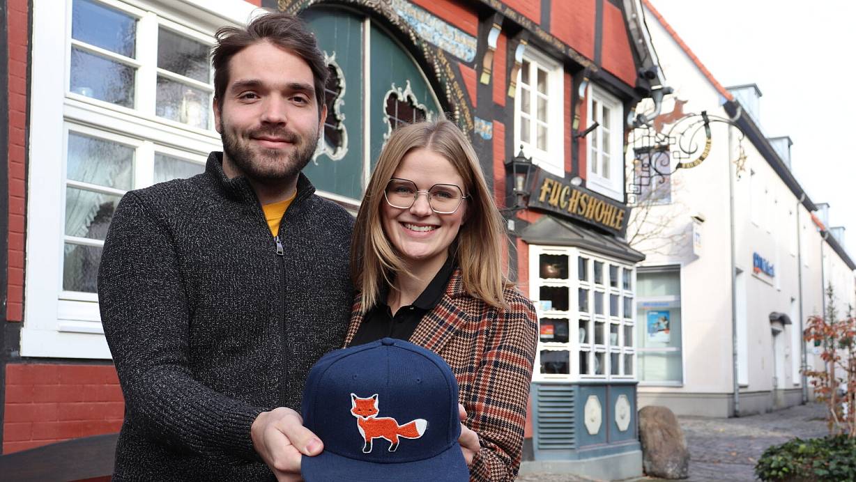 Patrick Domeyer und Melanie Vogt werden die Fuchshöhle am 6. November eröffnen. Schon seit Monaten macht der Koch Werbung in eigener Sache mit seiner Baseballkappe, auf die er sich einen Fuchs geklebt hat. | © Marion Pokorra-Brockschmidt