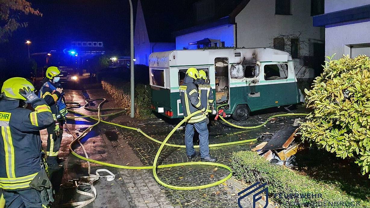 Wohnwagen, Anhänger und Wohnmobil in Flammen - Polizei vermutet Zusammenhang